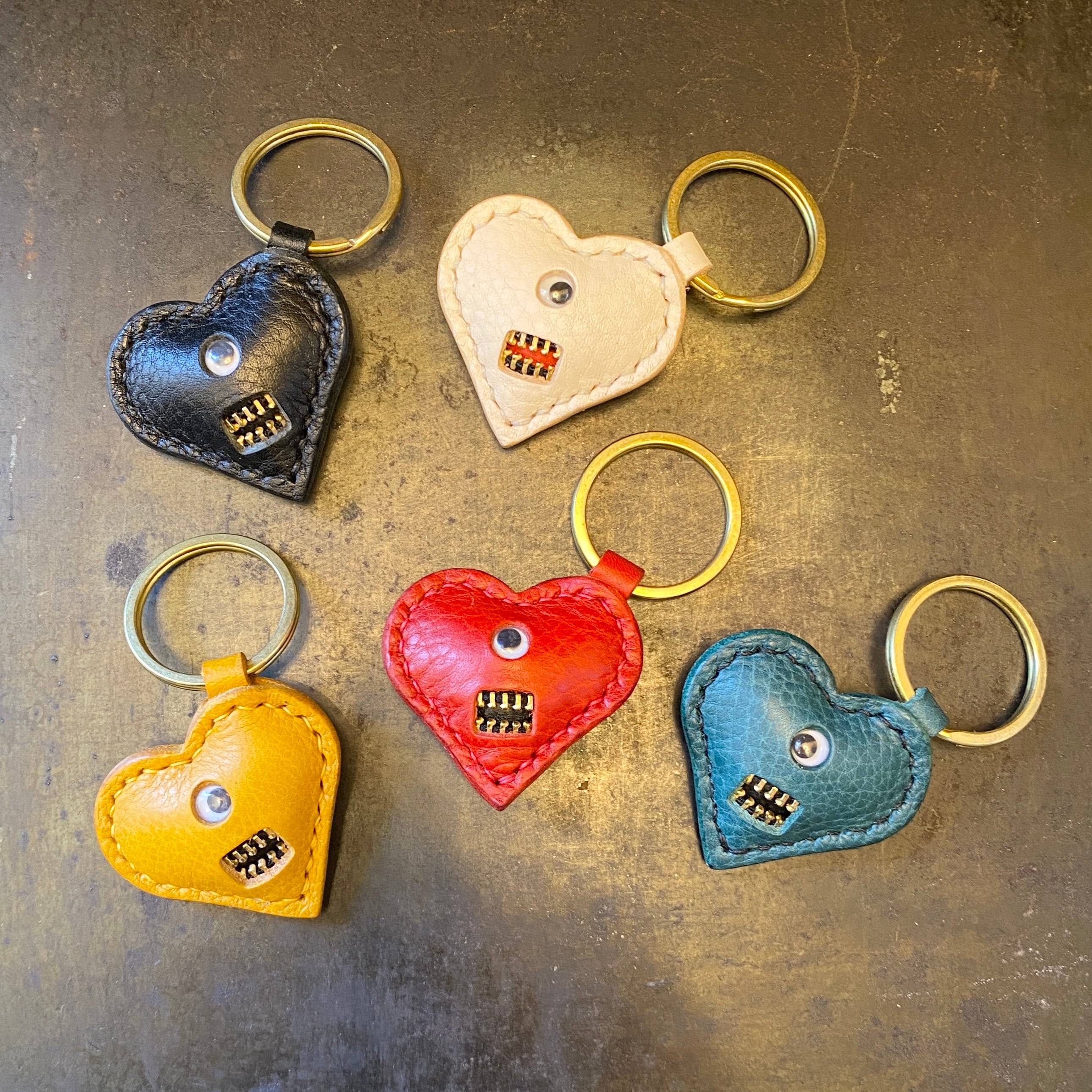 グリニー|ハンドメイド レザーキーホルダー|メキシコ風ハートモンスター(イエローモンスター)